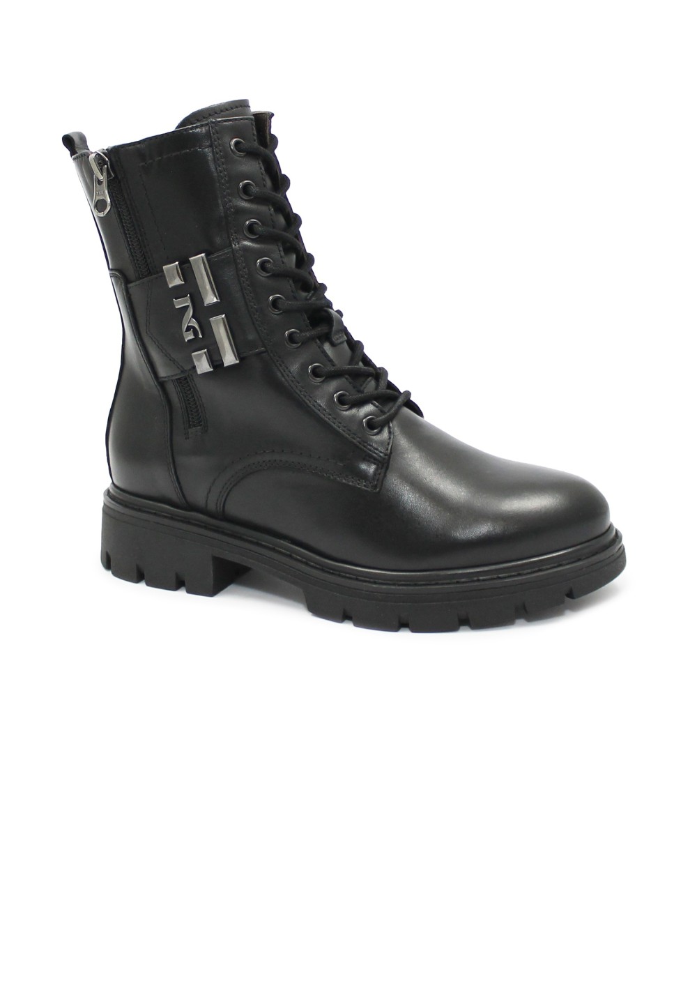 NERO GIARDINI 11862 nero stivaletti donna anfibio lacci zip pelle scarponcino