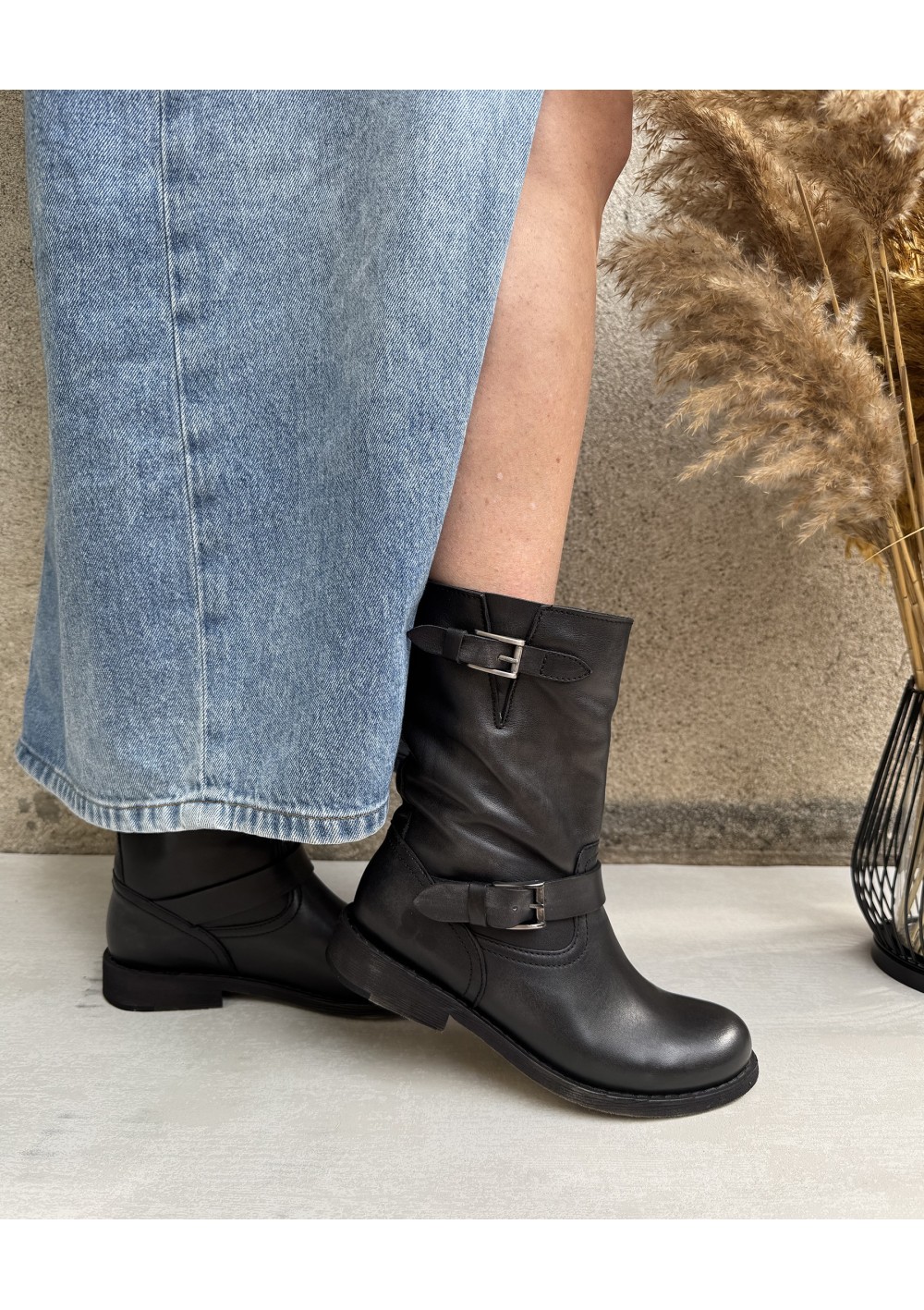 FELMINI E170 lavado black nero stivaletto tronchetto donna biker camoscio fibbia