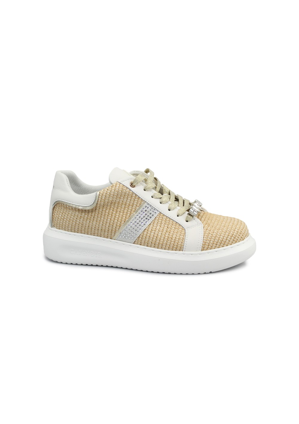 CAFè NOIR DE9010 beige scarpe donna sneakers lacci pelle rafia