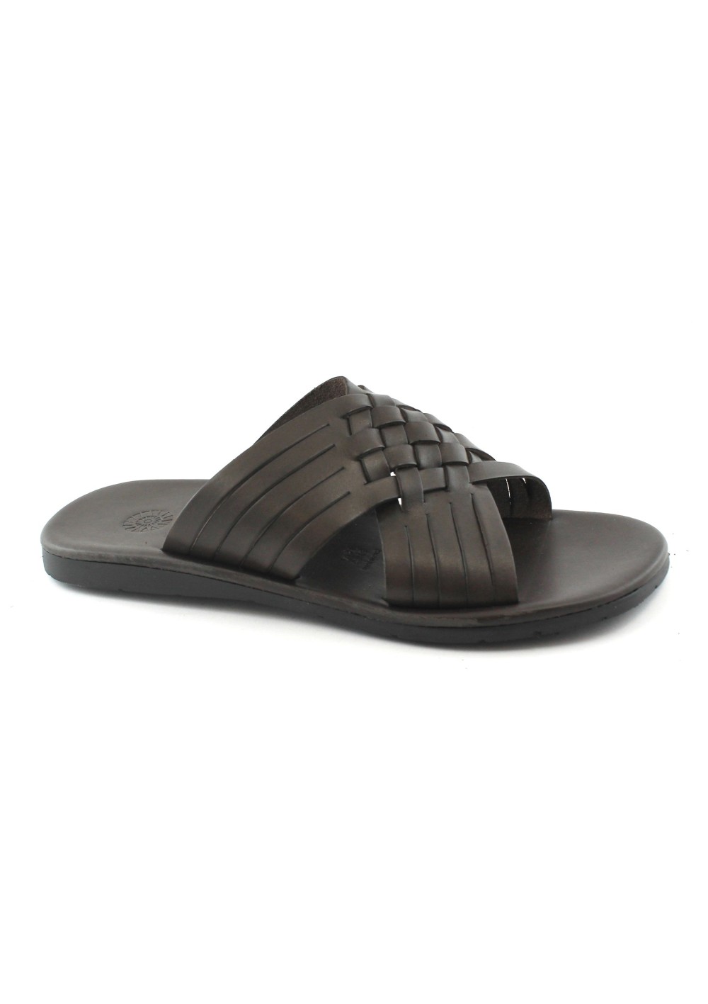 ZEUS 1170 testa di moro marrone scarpe uomo ciabatte fascie incrocio pelle