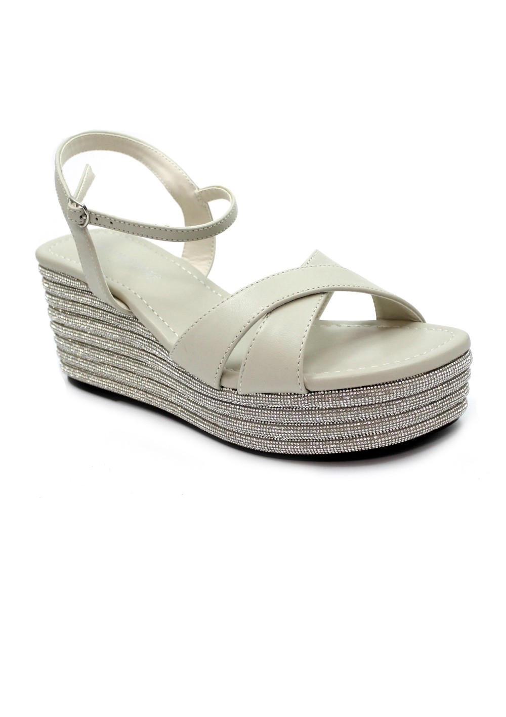 CAFè NOIR HB4026 bianco panna donna sandalo zeppa strass