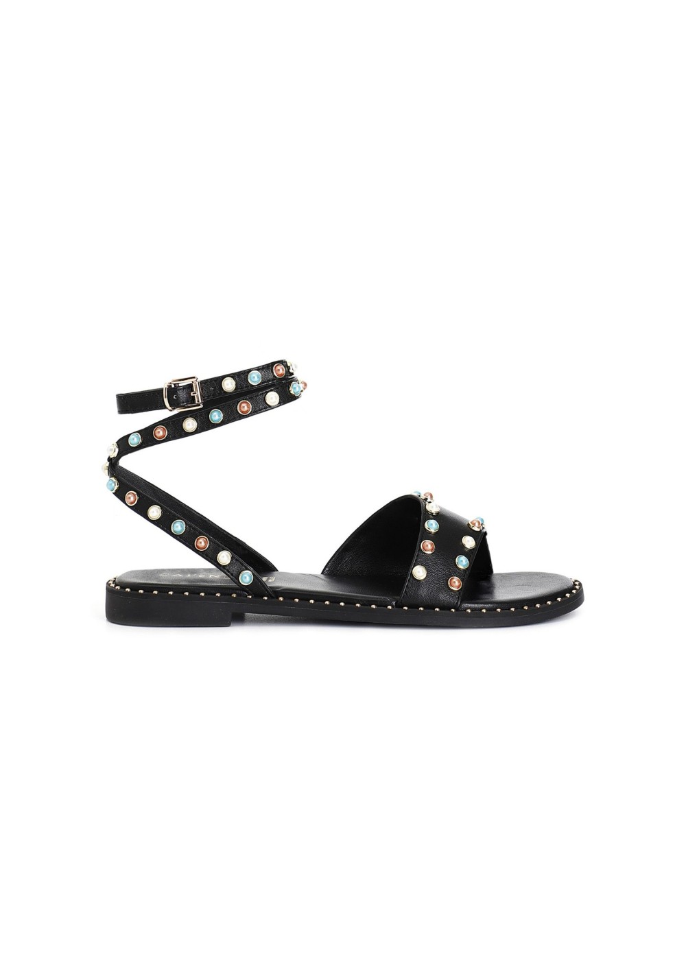 CAFè NOIR GG1104 nero sandali donna cinturino borchie perle pelle