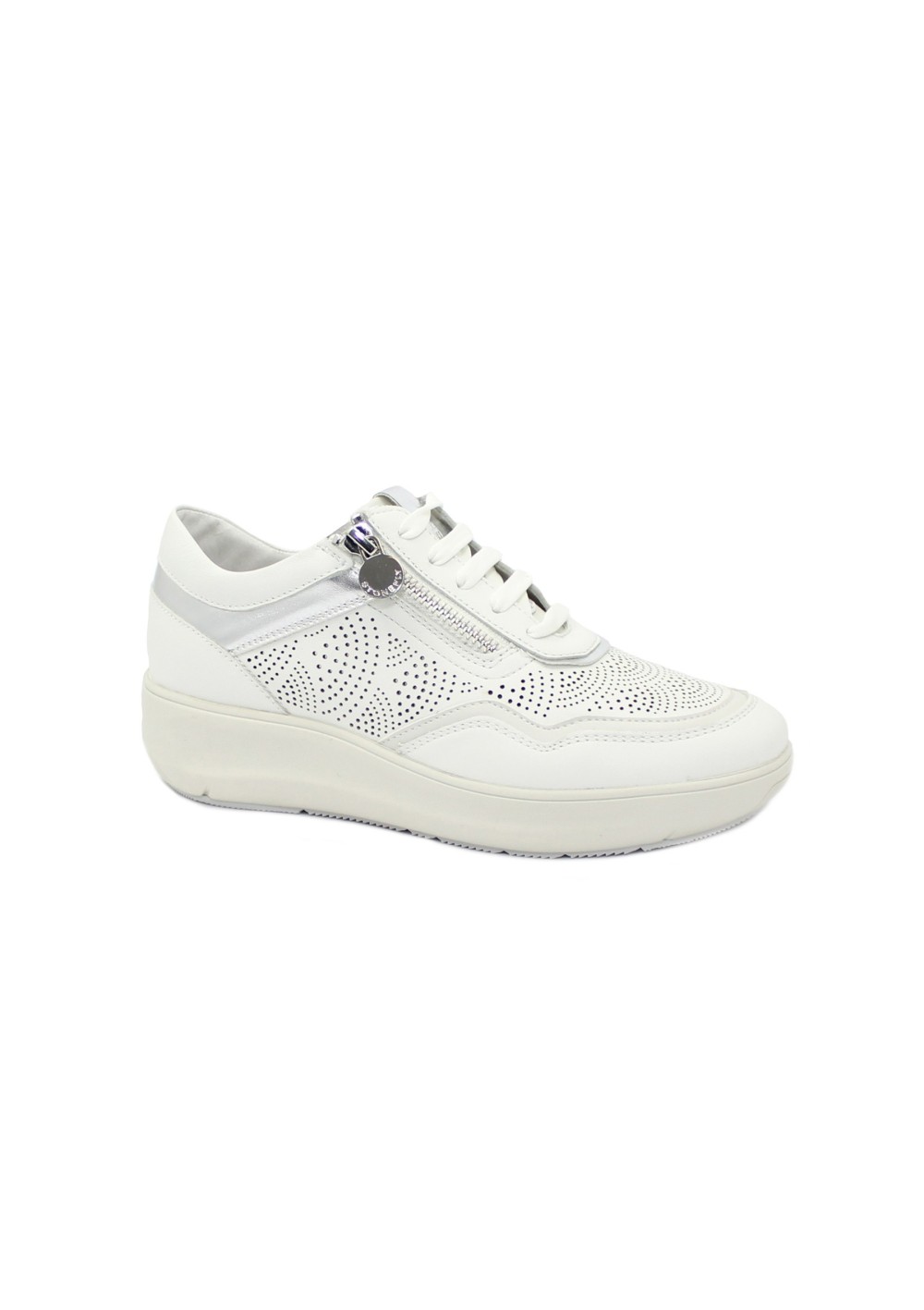 STONEFLY 220775 cloud white bianco scarpe donna sneakers lacci zip pelle forata