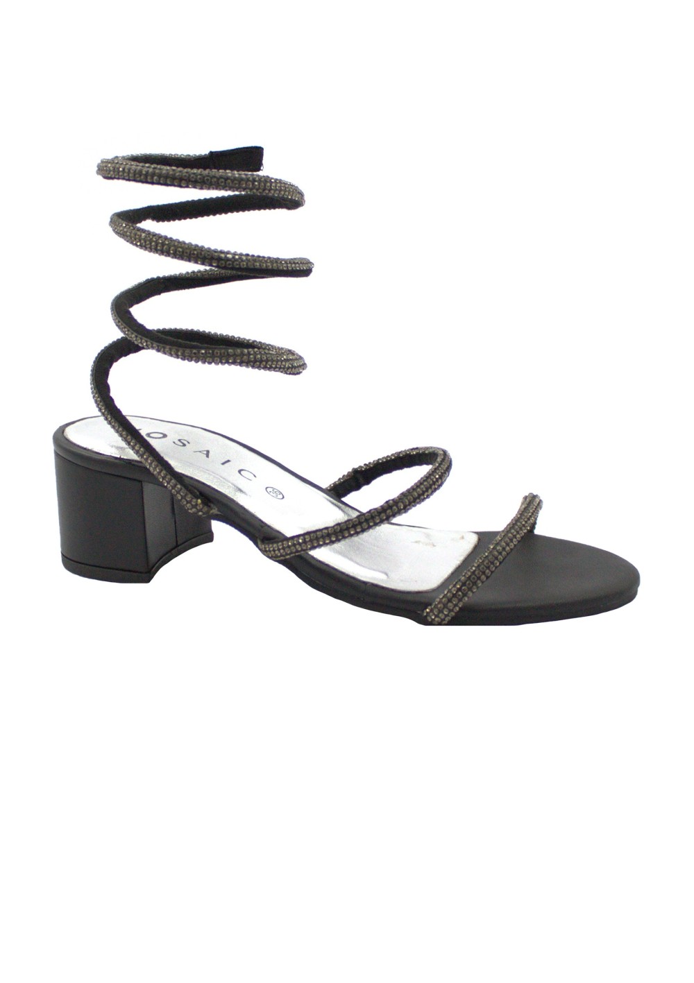 MOSAIC STRIP HI black nero sandali gioiello donna strass tacco schiava