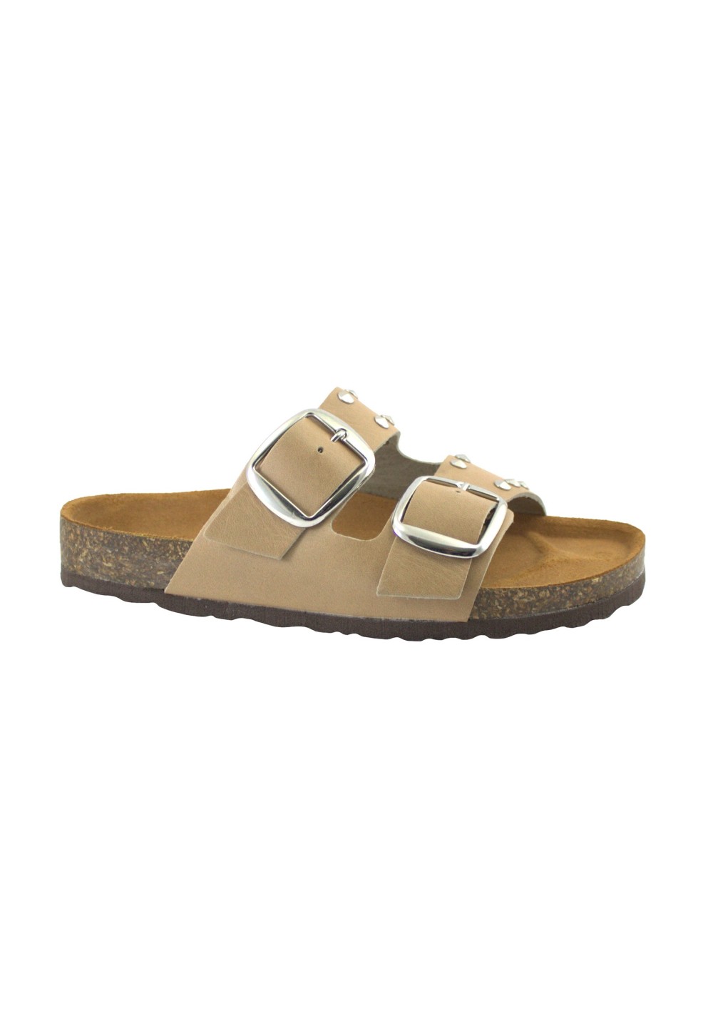 GIADA E196 crazy beige ciabatte donna anatomiche fibbie borchie pelle
