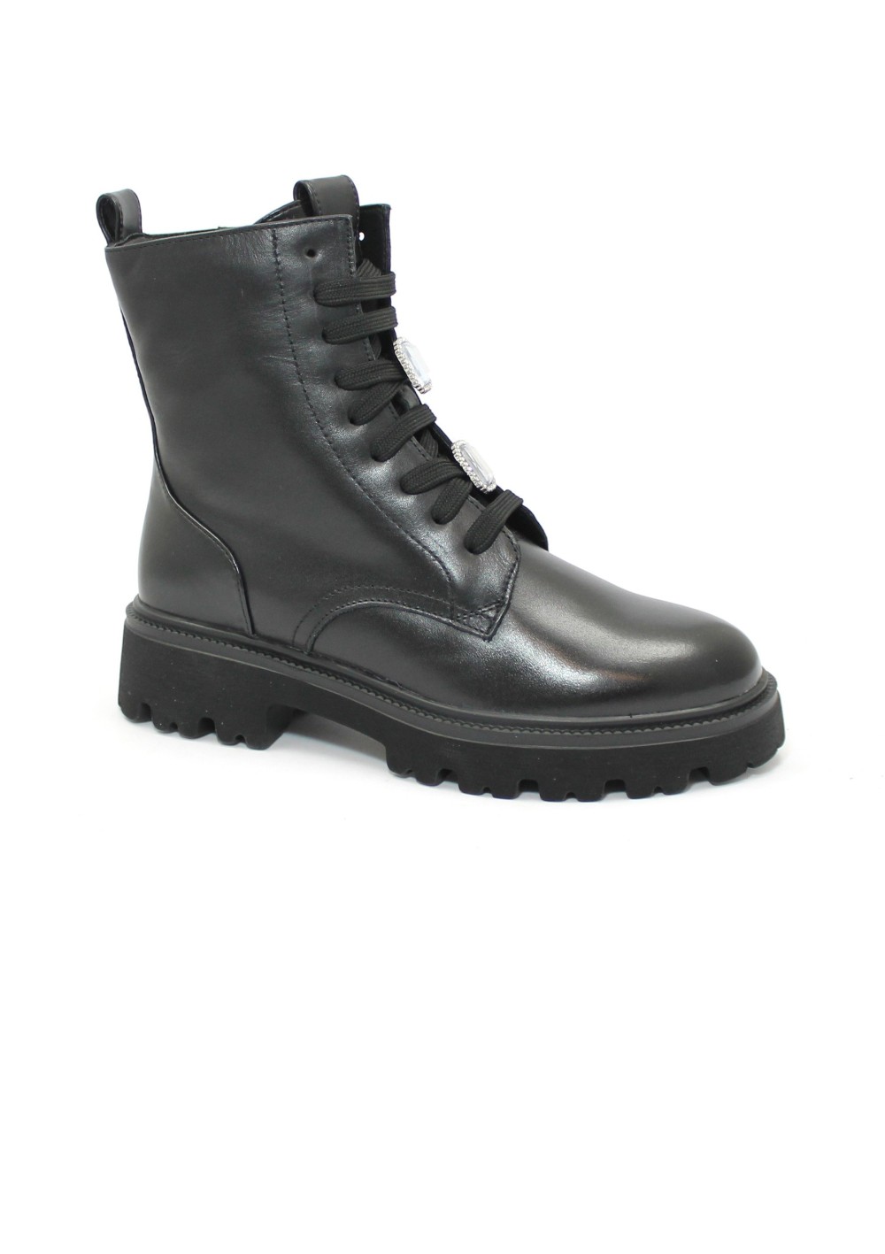 KEYS 10039 black nero scarpe donna scarponcino anfibio lacci pelle zip