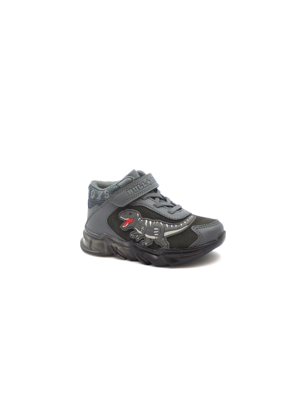 BULL BOY DNAL3391 grigio roccia scarpe bambino sneakers mid luci strappo lacci elastici pelle T-REX